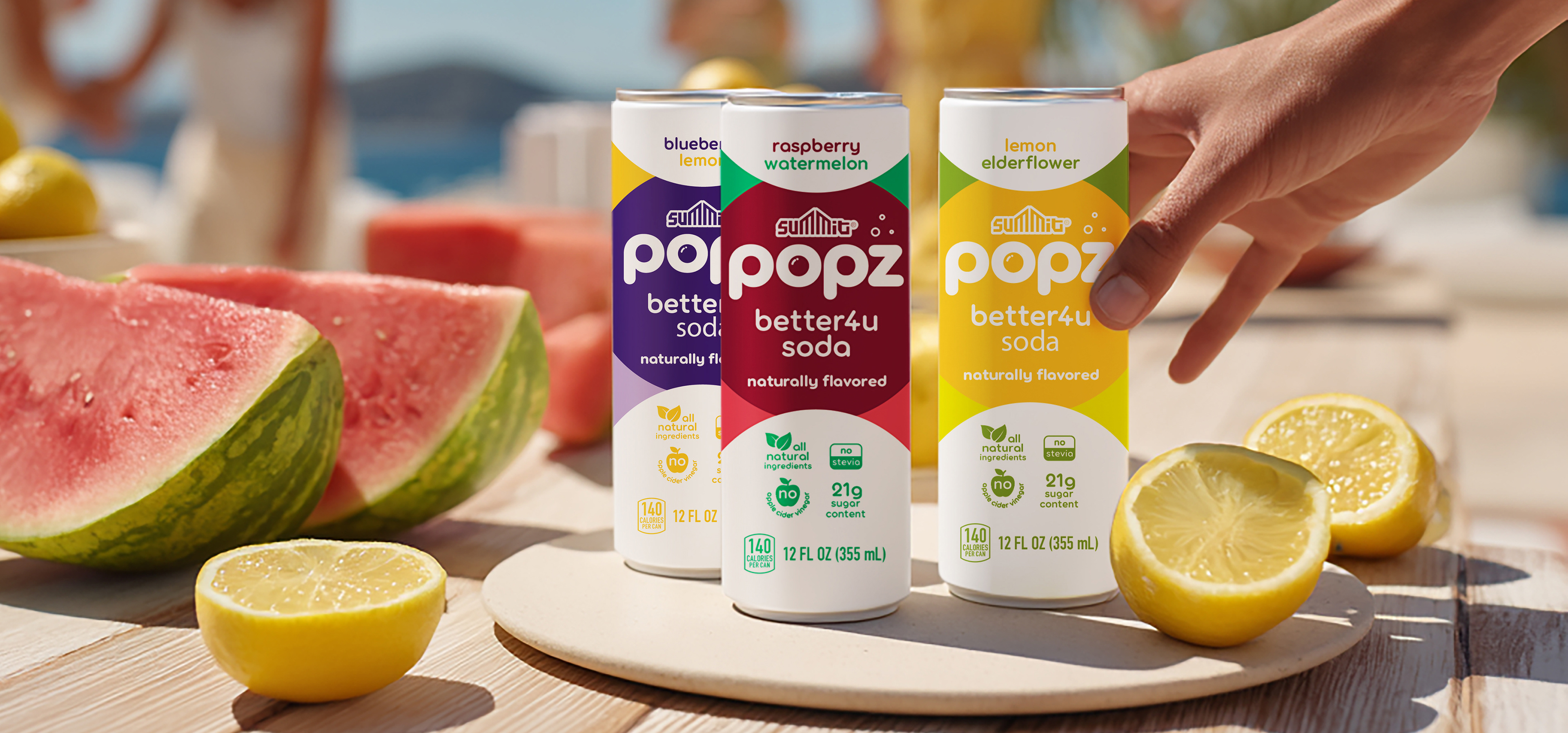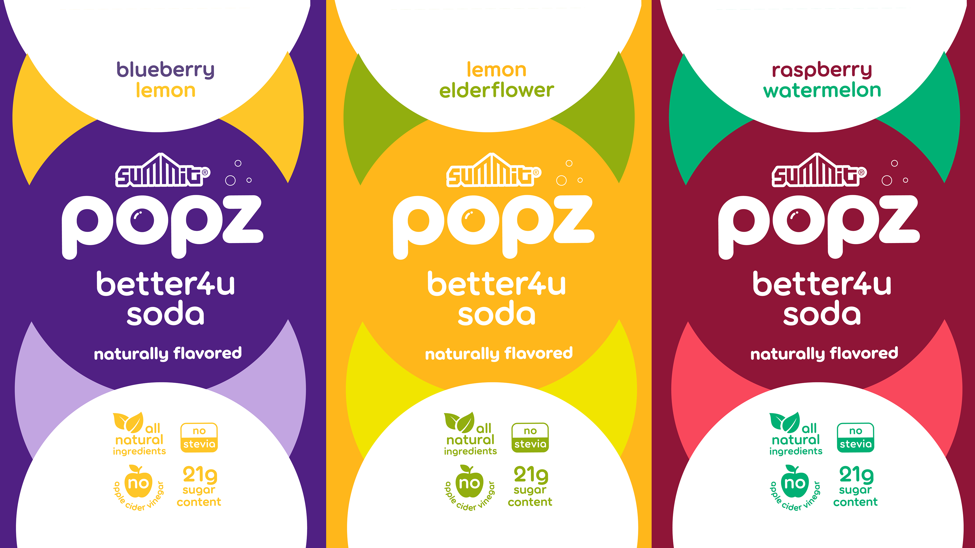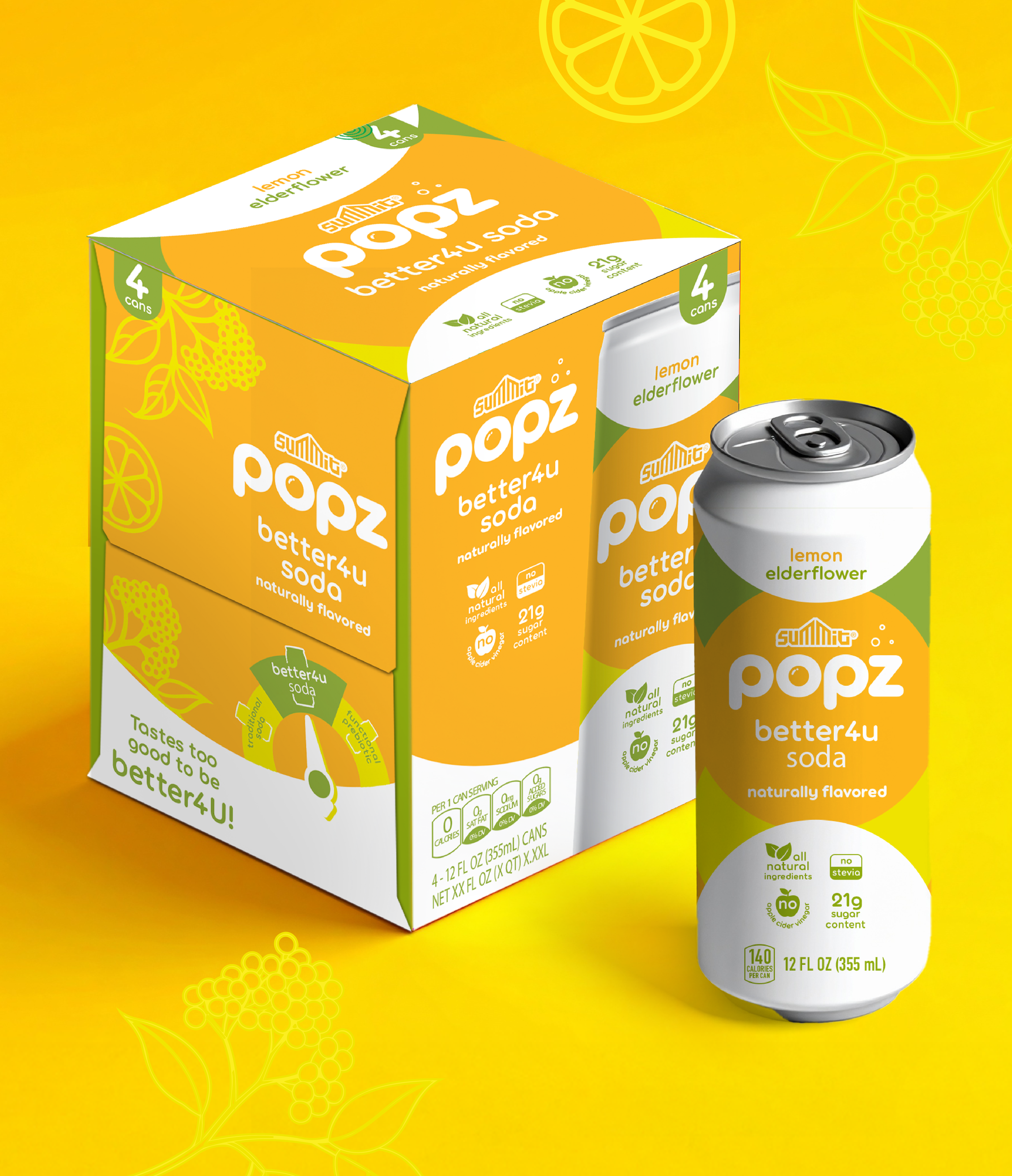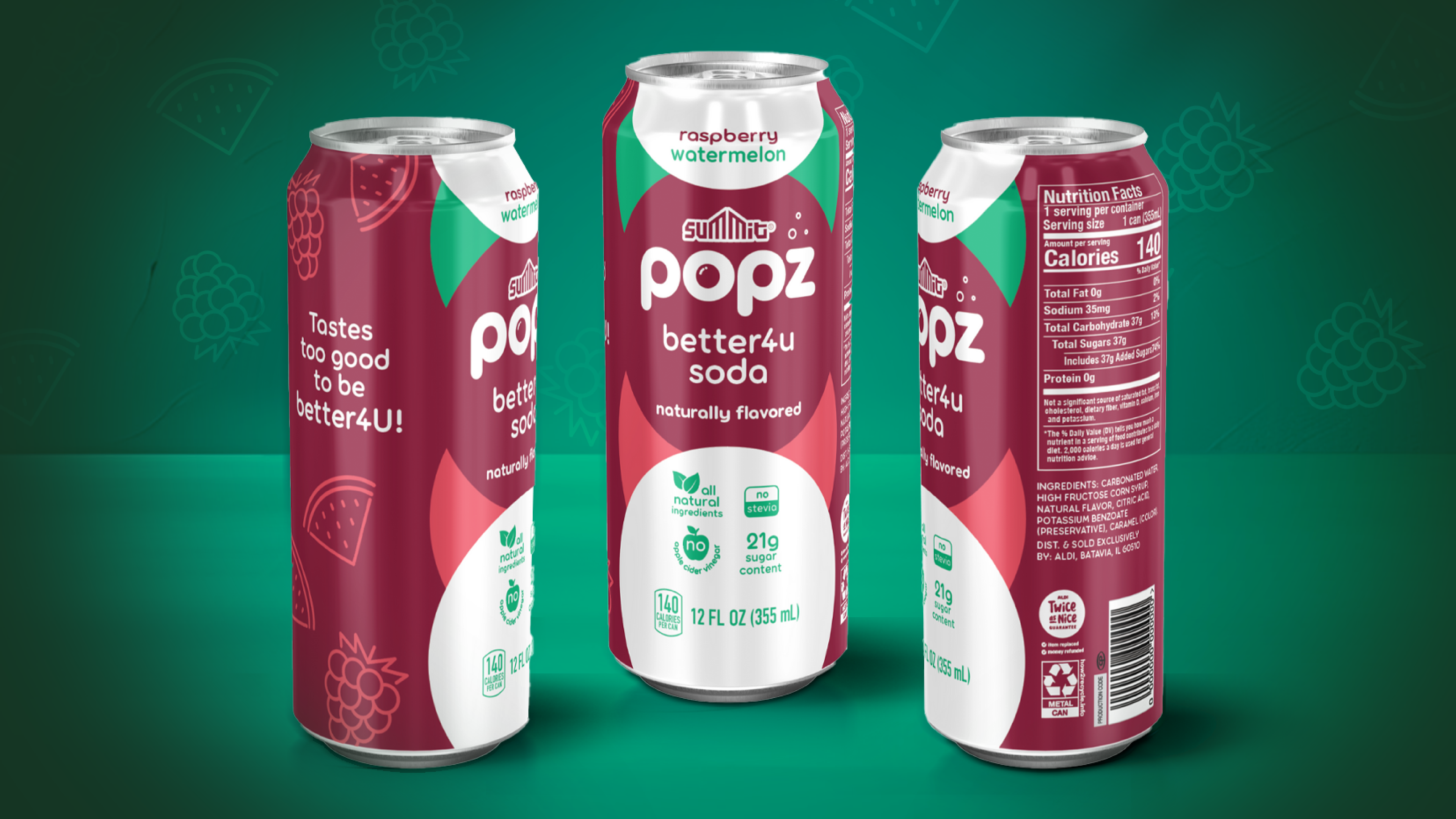 Aldi launched Popz better4u to enter the growing probiotic soda space. The goal: a clean, health-forward design with strong shelf impact and clear flavor cues.